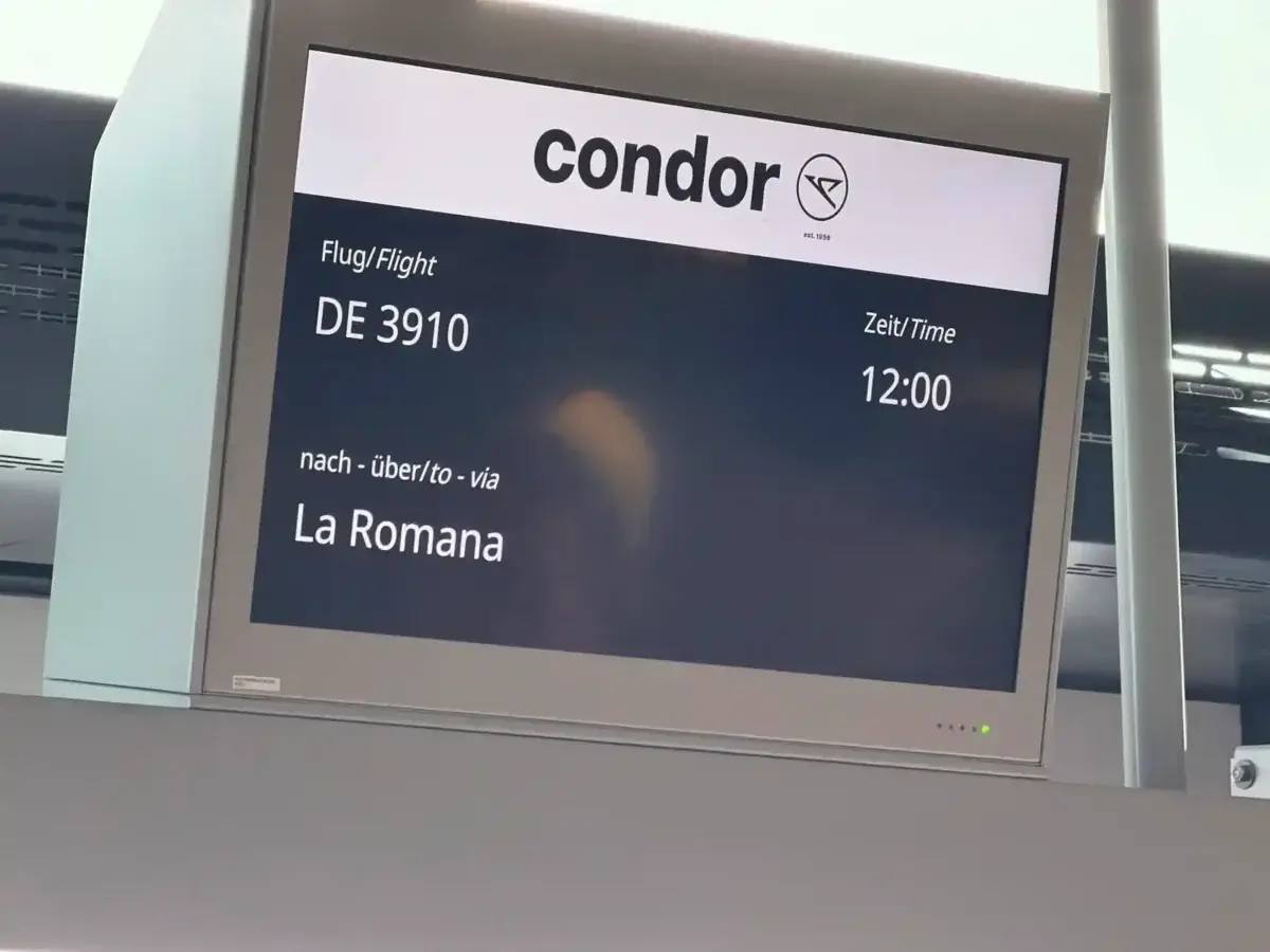 Das Taxi hat uns um 05:00 Uhr abgeholt und zum Flughafen gebracht, dort konnten wir gleich durch die Sicherheitskontrolle, da wir das Gepäck bereits gestern aufgegeben hatten. Alles lief schnell und reibungslos, sodass wir wenige Augenblicke später bei Mövenpick gesessen haben. Der erste Flug ging um 07:00 Uhr und brachte uns zuerst nach Frankfurt. Bisschen blöd war, dass wir da 4 Stunden Aufenthalt hatten, dort ging es dann um 12:00 Uhr weiter nach La Romana in der Dominikanischen Republik.